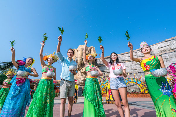 可以在傣家迎宾敬酒歌声中,喝着傣家姑娘敬上的米酒,体验独特的万人长桌傣宴,还可以全天候,不同区域看到各种高水准的版纳风情演绎,包含万达主题乐园茶马古道区的茶马劫镖情景秀—《茶马风云》;大型冰上音乐秀—《蝴蝶公主》;民俗婚庆秀—《傣楼招亲》等,当然,还不能错过糅合了高难度杂技、柔术、木偶、音乐及傣族文化而成的震撼表演——世界顶级震撼大秀《傣秀》。如此看来,湖光岛影如诗如画的多情版纳,是不是比高楼林立、车流涌动的帝都北京别有一番情趣呢?